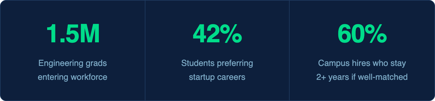 Every year between September and March, India's engineering and management campuses transform into intense battlegrounds where companies compete for the attention, interest, and commitment of the country's brightest emerging talent. Over 1.5 million engineering graduates enter the workforce annually in India, representing the world's largest pipeline of technically educated young professionals. For established companies like Google, Microsoft, Amazon, TCS, and Infosys, campus hiring is a well-oiled machine with dedicated teams, established relationships with placement cells, and brand recognition that does much of the heavy lifting. For startups, the picture is dramatically different.