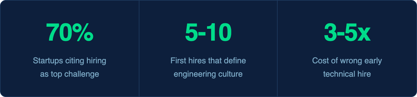Every successful technology company begins with the same pivotal challenge: assembling the founding engineering team that will translate a vision into a product. This challenge is uniquely high-stakes because the first five to ten technical hires define not just what the company builds, but how it builds, the engineering culture it develops, the technical architecture it adopts, and the talent brand it projects to future candidates. According to data from Y Combinator, the quality of the founding engineering team is the single strongest predictor of startup success after product-market fit, more predictive than the business model, the market size, or even the founding team's prior experience.